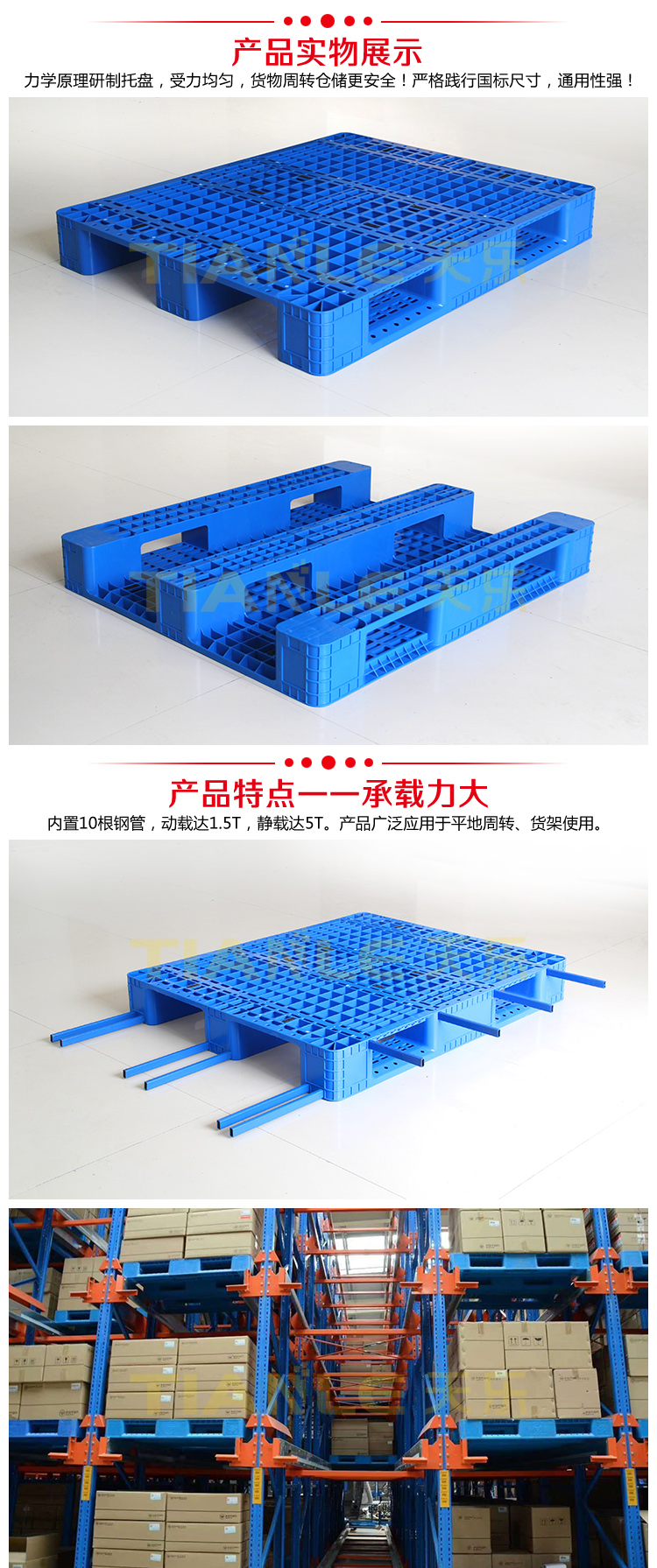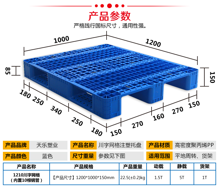 物流行業(yè)推薦使用托盤 尺寸:1200X1000X150MM 型號:ZPCG---1210八根 載重:動載1.5T 靜載:5T 貨架載:1T