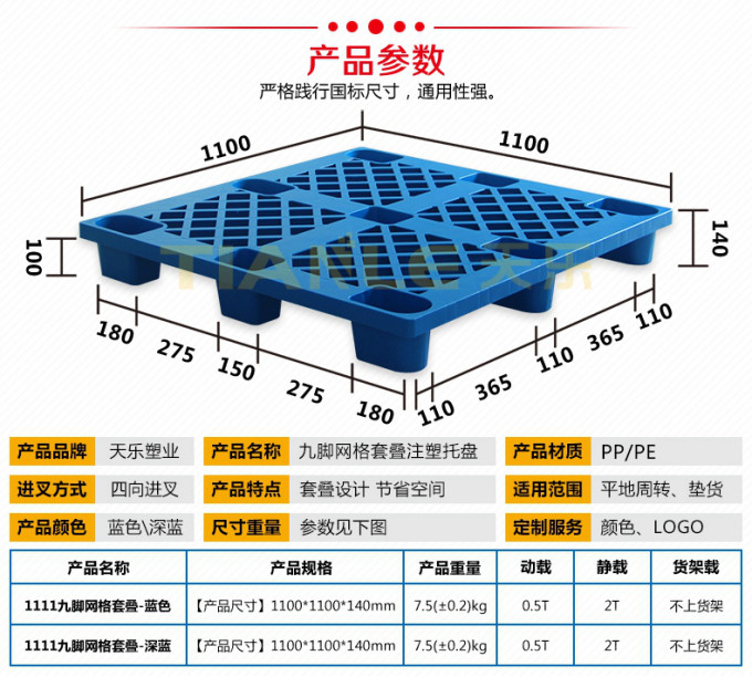 DWQ-1111九腳網(wǎng)格套疊塑料托盤