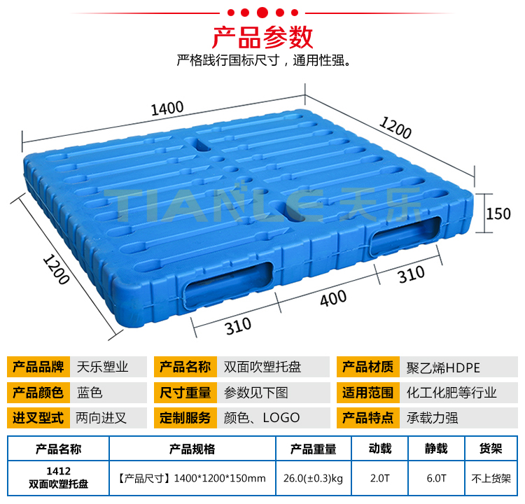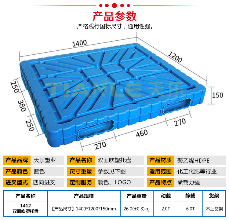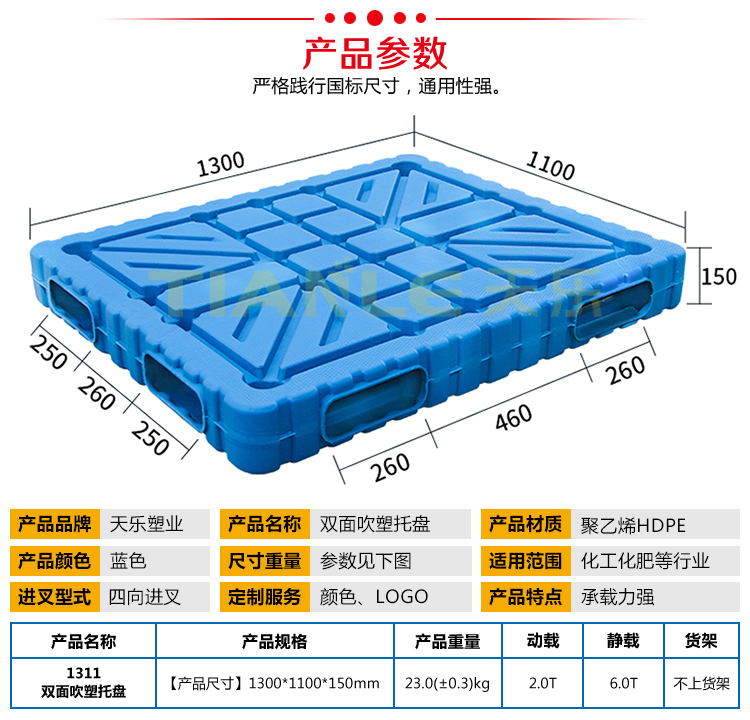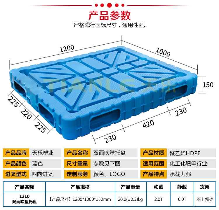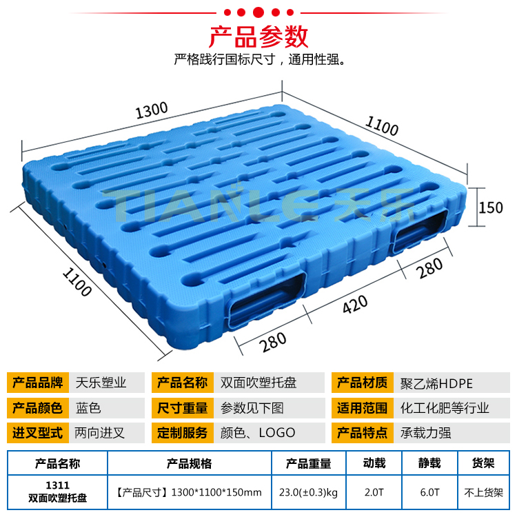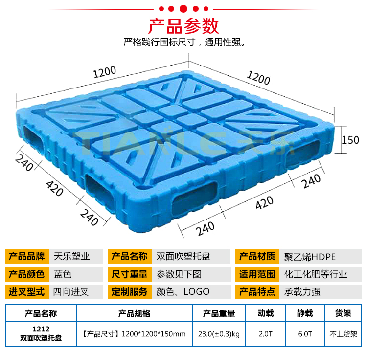 山東天樂(lè)塑料科技有限公司,主要生產(chǎn)塑料托盤(pán),塑料周轉(zhuǎn)筐,塑料垃圾桶,銷(xiāo)售木包裝箱木托盤(pán),膠合板托盤(pán),產(chǎn)品使用于汽車(chē)、食品、醫(yī)藥、造紙、印刷、電子、電器、化工、紡織、服裝、倉(cāng)儲(chǔ)物流、環(huán)衛(wèi)等行業(yè)。產(chǎn)品多規(guī)格全價(jià)格實(shí)惠,大廠(chǎng)家售后保障體系完善。產(chǎn)品品種,以載重量分類(lèi),包括:一次 使用的特輕型、輕型、標(biāo)準(zhǔn)型、貨架加重型等適用范圍:食品醫(yī)藥化工紡織汽配廠(chǎng)等行業(yè)倉(cāng)儲(chǔ)物流運(yùn)輸用