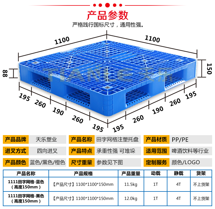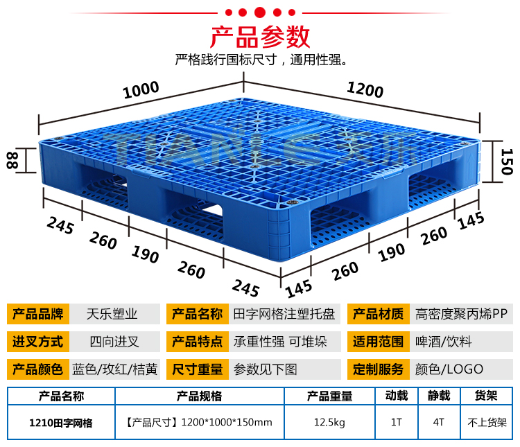 山東天樂塑料科技有限公司,主要生產(chǎn)塑料托盤,塑料周轉(zhuǎn)筐,塑料垃圾桶,銷售木包裝箱木托盤,膠合板托盤,產(chǎn)品使用于汽車、食品、醫(yī)藥、造紙、印刷、電子、電器、化工、紡織、服裝、倉(cāng)儲(chǔ)物流、環(huán)衛(wèi)等行業(yè)。產(chǎn)品多規(guī)格全價(jià)格實(shí)惠,大廠家售后保障體系完善。產(chǎn)品品種,以載重量分類,包括:一次 使用的特輕型、輕型、標(biāo)準(zhǔn)型、貨架加重型等適用范圍:食品醫(yī)藥化工紡織汽配廠等行業(yè)倉(cāng)儲(chǔ)物流運(yùn)輸用