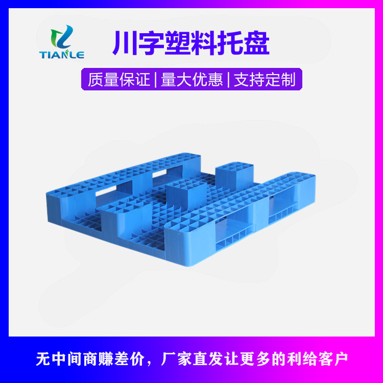 2、塑料托盤構(gòu)造:塑料托盤有不同的構(gòu)造方式,依據(jù)叉車的貨叉特性、承載請求以及其他應(yīng)用工況請求來選擇。塑料托盤的構(gòu)造直接影響到托盤的運用效率,合適的構(gòu)造可以發(fā)揮叉車高效率作業(yè)的特性。塑料托盤作為地鋪板運用,即托盤裝載貨物以后不再挪動,只是起到防潮防水的作用,可選擇構(gòu)造簡單、本錢較低的托盤,如簡易的,但是應(yīng)該留意托盤的靜載量。用于運輸、搬運、裝卸的托盤,要選擇強度高、動載大的托盤。這一類的托盤由于要重復(fù)運用,并且要配合叉車運用,因而對托盤的強度請求較高,這樣就請求托盤的構(gòu)造是“田”字行或者是“川”字行的。